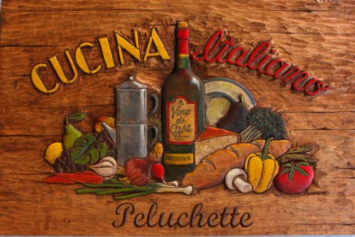 Created from an authetic reproduction of a carving by artist Al Pisano. Cutting board measures approximately 12 x 15 and is dishwasher safe. Made in the USA by skilled artisans and under the direction of the artist.